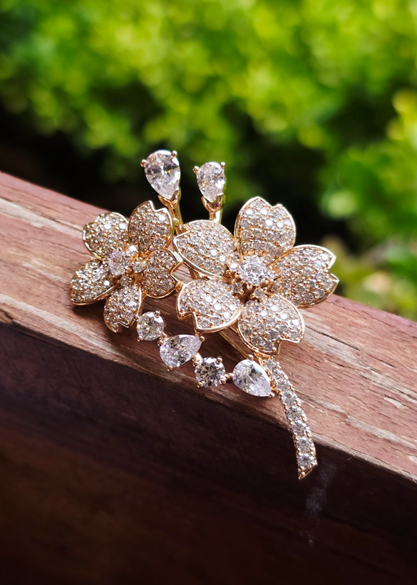 گل سینه ژوپینگ شاخه گل طلایی نگین دار