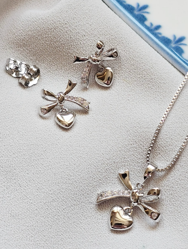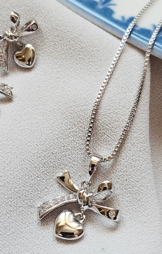 نیم ست پاپیون و قلب سیلور ژوپینگ(بدون زنجیر)
