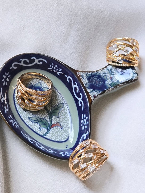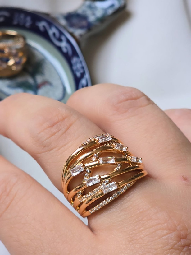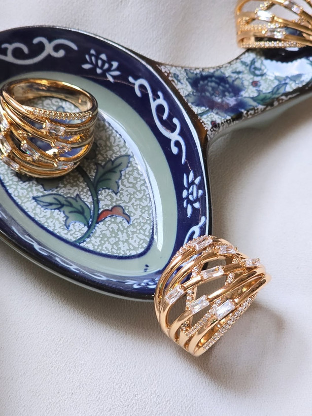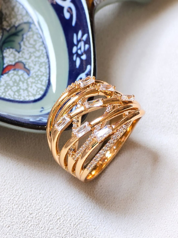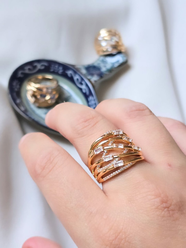 انگشتر ژوپینگ طلایی زنانه نگیندار طرح مدرن | زیورآلات لوکس