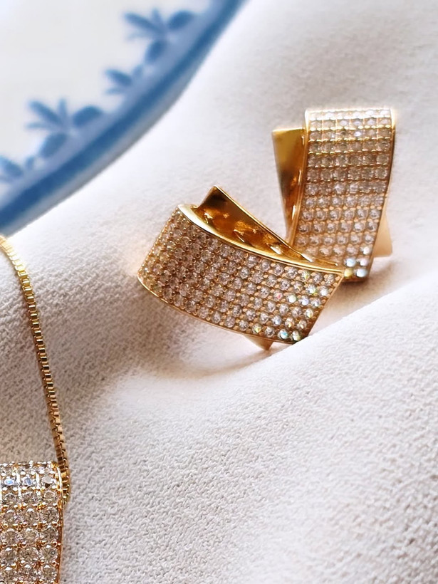 نیمست جواهری ژوپینگ طلایی با نگینهای سفید(با زنجیر )