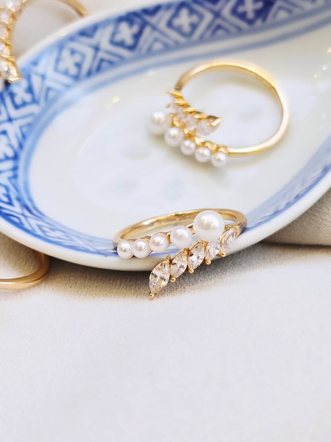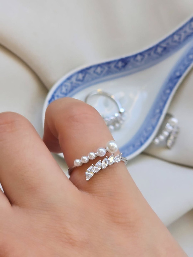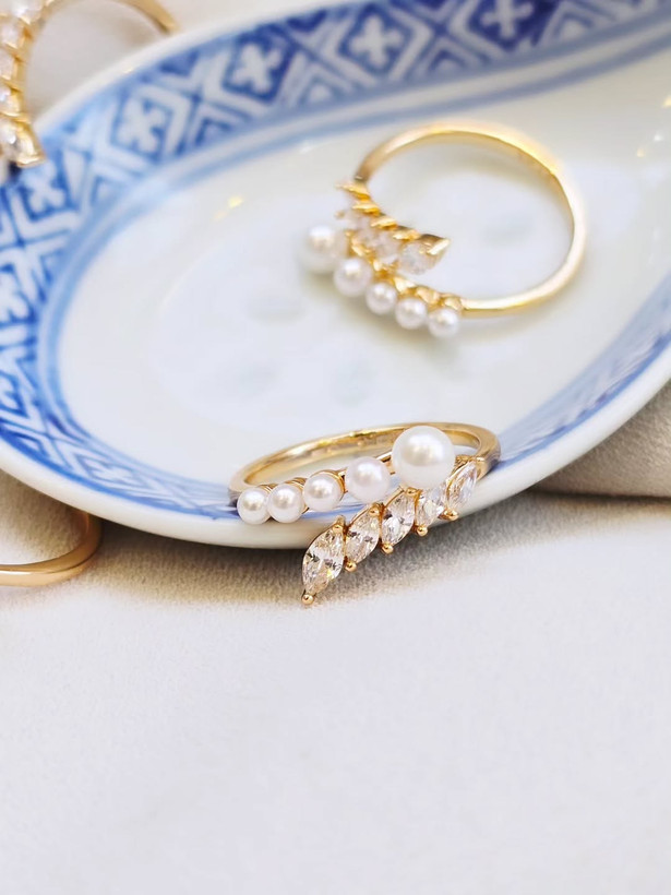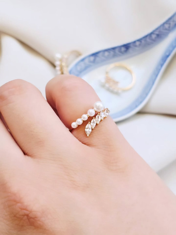 انگشتر برگ و مروارید ژوپینگ(سیلور و گلد)