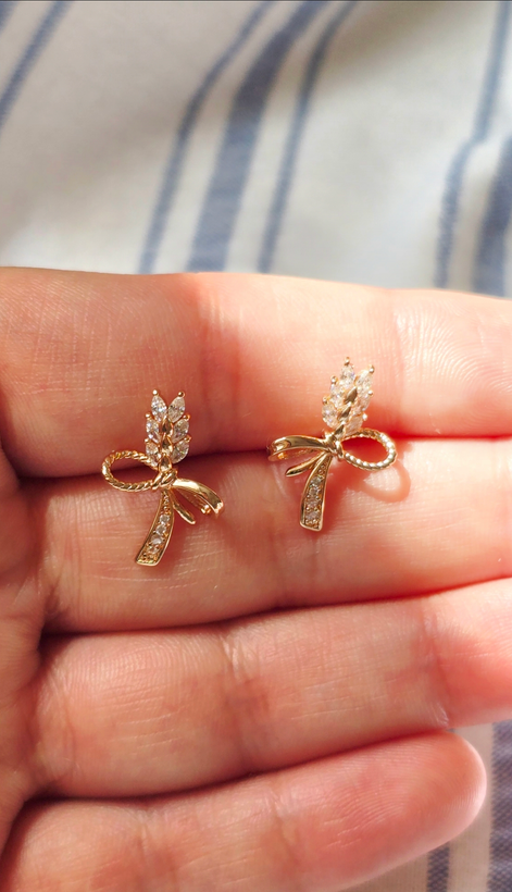 گوشواره میخی شاخه گندم نگینی ژوپینگ