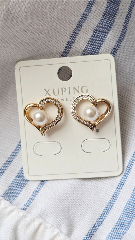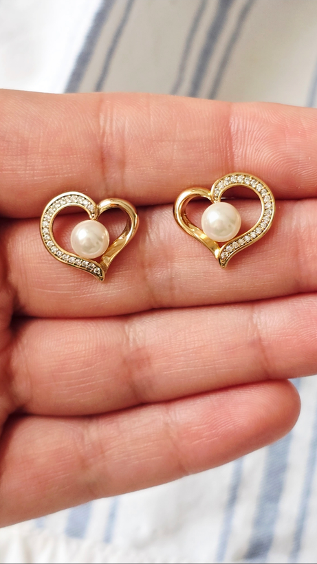 گوشواره میخی قلب و مروارید ژوپینگ