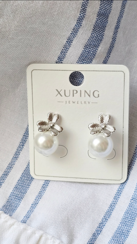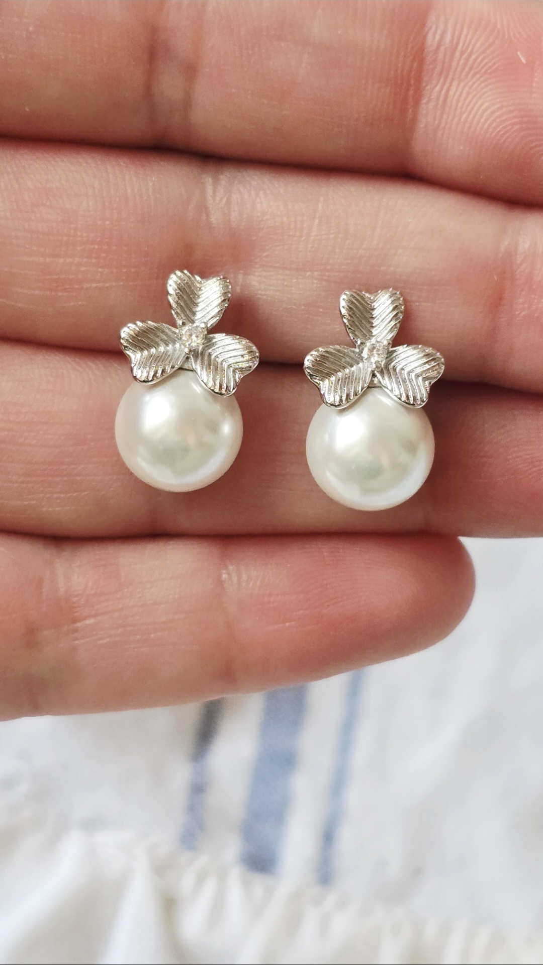 گوشواره میخی شبدر و مروارید سیلور ژوپینگ