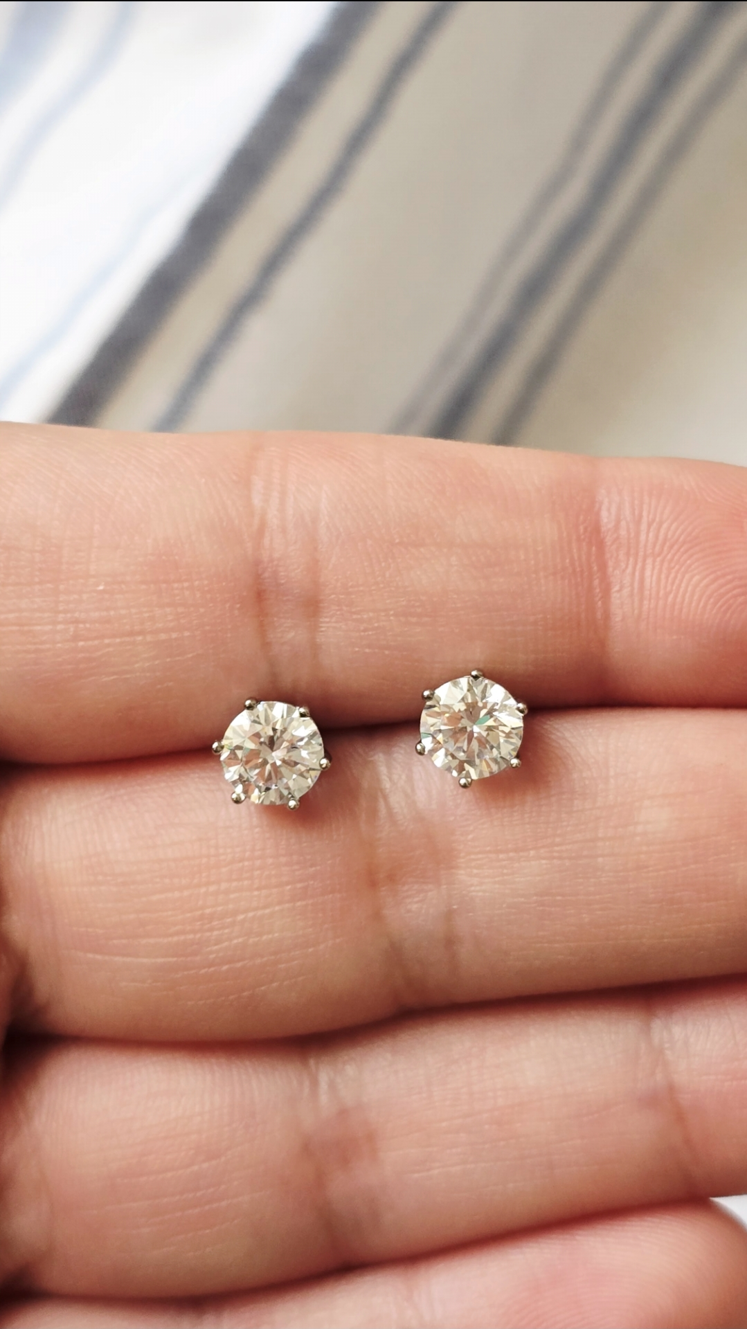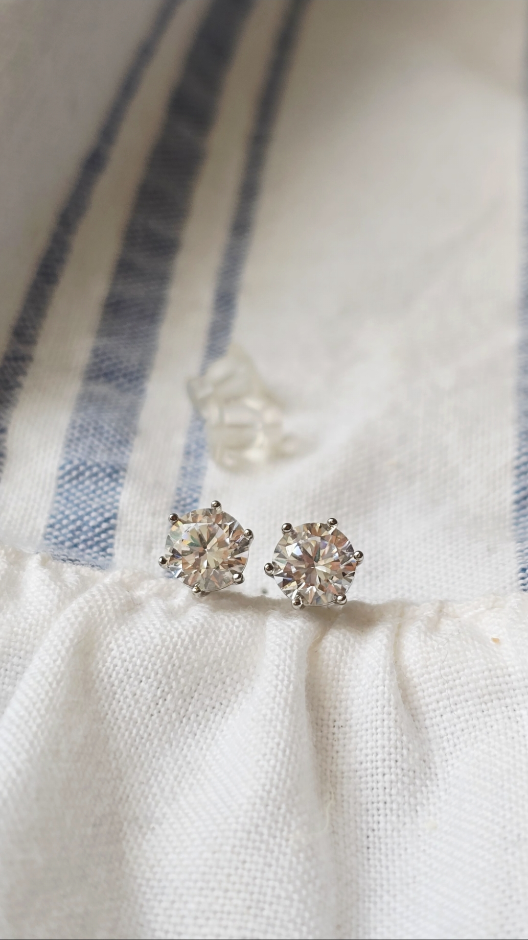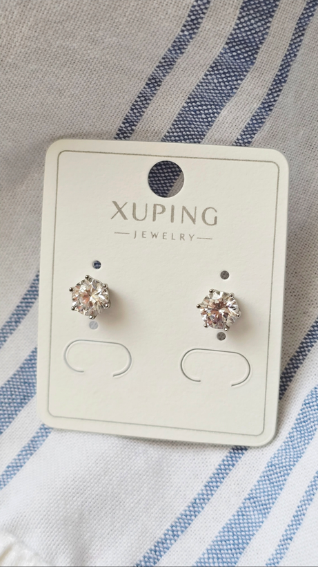 گوشواره میخی تک نگین بزرگ سیلور ژوپینگ