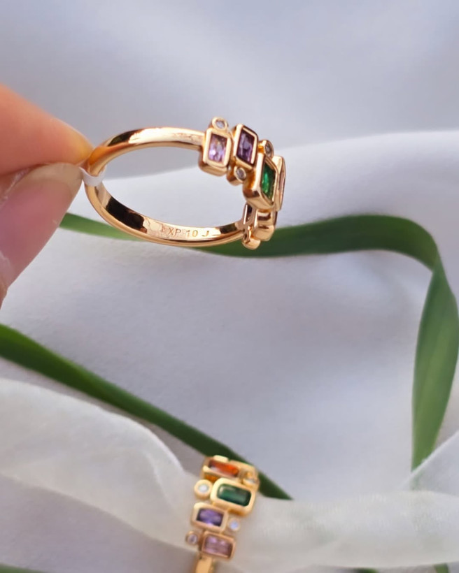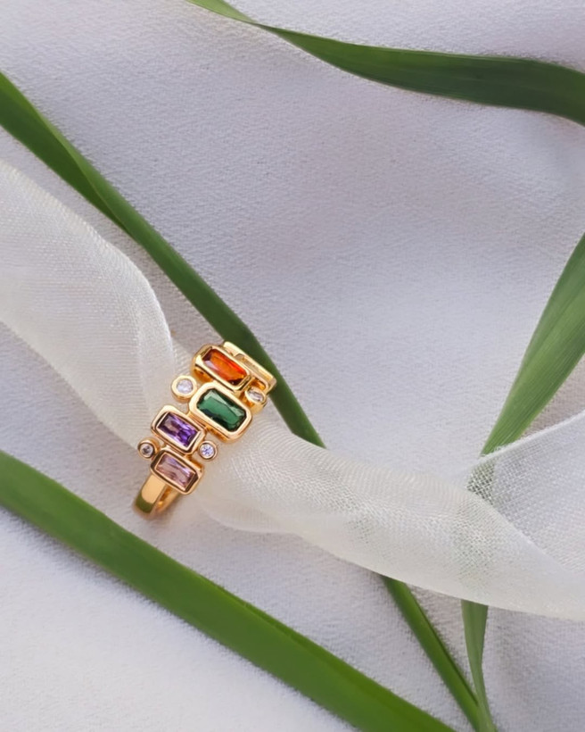 اگه به دنباله یه اکسسوری خاص و چشمگیر میگردی، این انگشتر دقیقا همونه! انگشتر مولتیکالر ژوپینگ با طراحی خاص و ترکیب رنگهای جذاب، انتخابی بینظیر برای خانمهایی که عاشق جزئیات هستن. ویژگیها: جنس باکیفیت با روکش طلای براق نگینهای رنگی درخشان با چیدمان هنرمندانه ضد حساسیت و مناسب استفاده روزانه کاملاً سبک و راحت روی دست ایدهآل برای ست کردن با استایلهای روزمره، مهمونیها و حتی هدیه دادن به عزیزات!