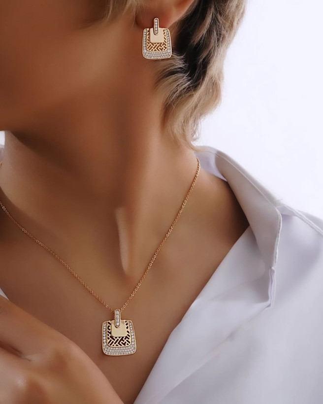 نیم ست مربعی نگین دار ژوپینگ با گوشواره میخی