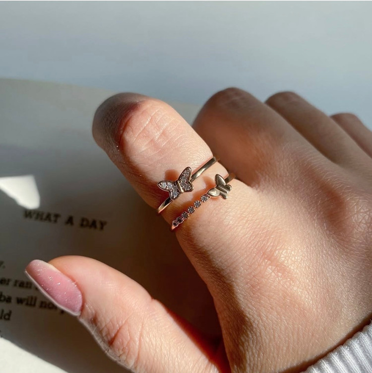 انگشتر دو لاین پروانه ژوپینگ – طلایی